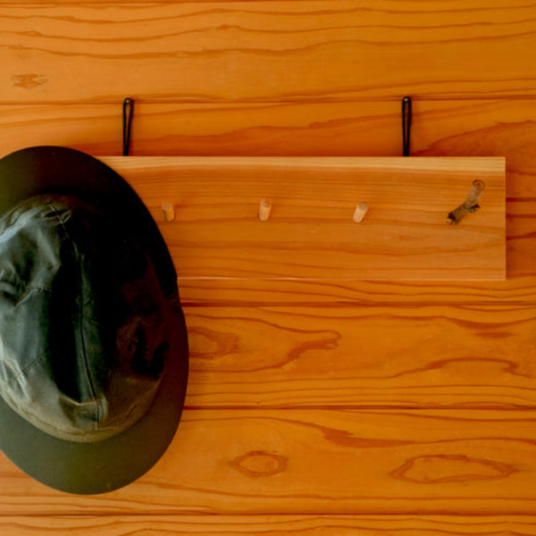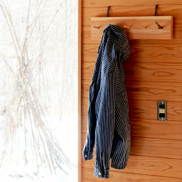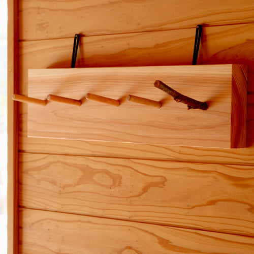 ■Material: ベース=杉, フック=榛の木, 掛紐=パラコード(ナイロン)